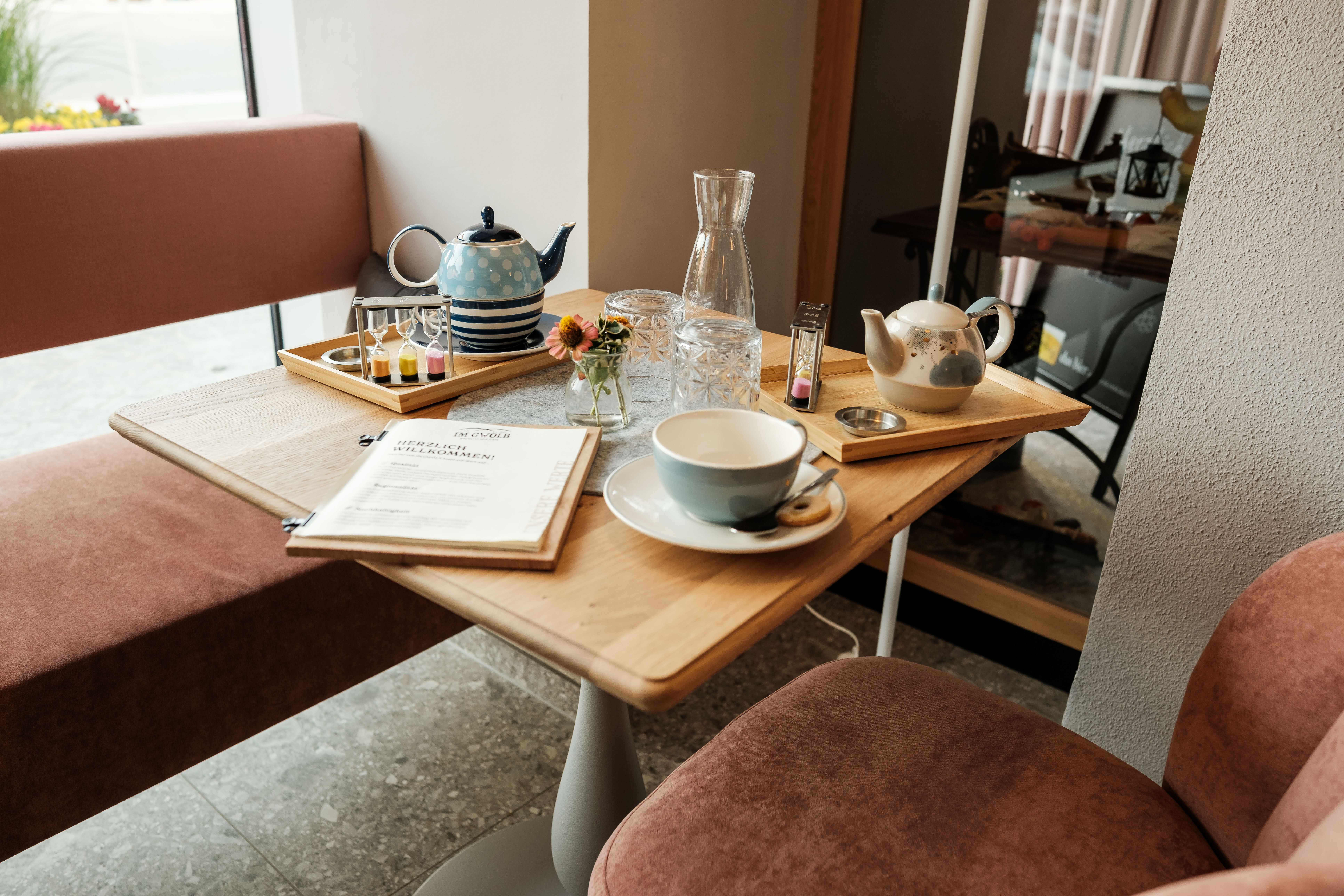 Dank Hafermilch für den Kaffee und unserem veganen Frühstück kommen bei uns auch Vegetarier und Veganer auf ihre Kosten. In unserer Frühstücksvitrine servieren wir zudem täglich wechselnde Snacks und Köstlichkeiten.